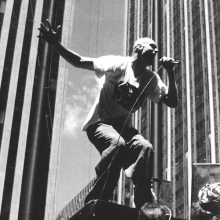 On May 30, 1990, Midnight Oil interrupted their North American tour for a “special guerrilla action” outside Exxon Oil headquarters on the crowded Avenue of the Americas in midtown Manhattan. The agitprop event from the back of a flat-bed truck drew more than 10,000 people out of the nearby office buildings and onto the street.