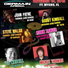 The cast of stellar star singers includes Mickey Thomas of STARSHIP, Bobby Kimball original lead singer of TOTO, Steve Walsh formerly of KANSAS, Robin Zander of CHEAP TRICK, Fee Waybill of THE TUBES, and John Payne formerly of ASIA.