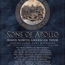 August 21, 2019 -- SONS OF APOLLO--former Dream Theater members Mike Portnoy and Derek Sherinian, Ron "Bumblefoot" Thal (ex-Guns N’ Roses), Billy Sheehan (The Winery Dogs, Mr. Big, David Lee Roth) and Jeff Scott Soto (ex-Journey, ex-Yngwie Malmsteen's Rising Force)--is currently finishing up their second album which will be released in January 2020, but they’re not wasting any time in announcing the U.S. headlining “MMXX Tour” that will support it. The trek will launch January 24 in Pomona, CA and will take them around the world throughout the year. Tickets go on sale today at 12:00 PM local time.